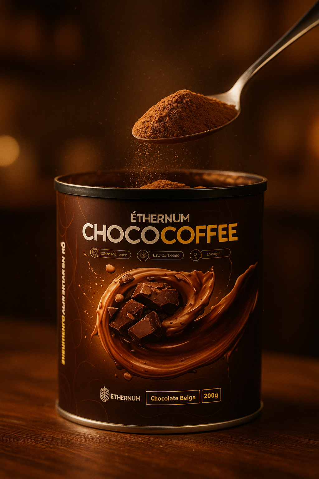 O ChocoCoffe da Ethernum une a potência de um termogênico inteligente com o prazer de um café cremoso com chocolate.